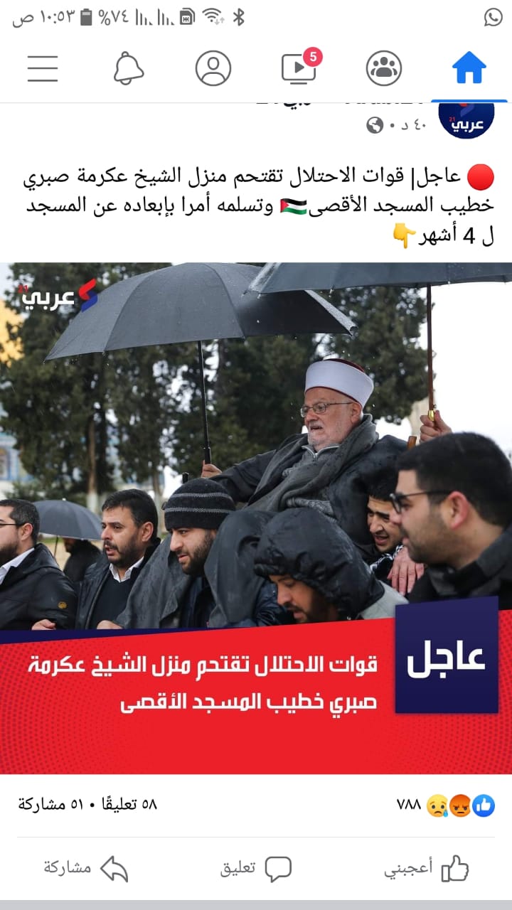 مخابرات الإحتلال تقتحم منزل خطيب الأقصى وتسلمه أمراً بالمنع من السفر