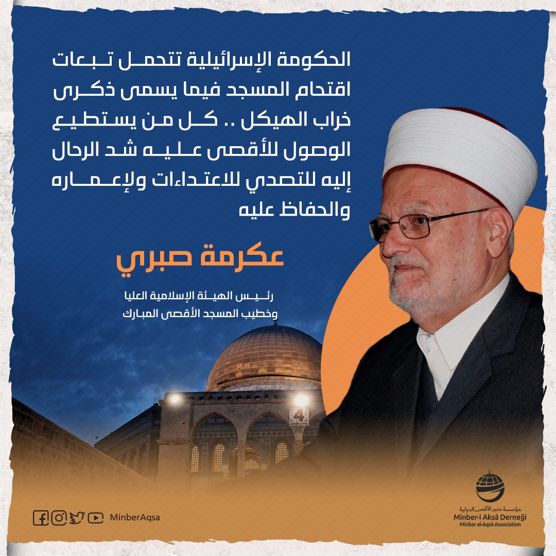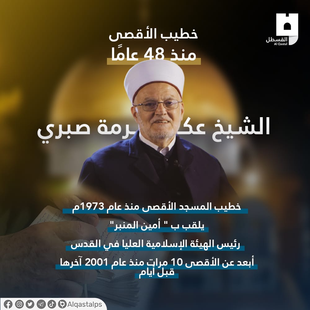 بمناسبة ذكرى الإسراء والمعراج الدكتور الشيخ عكرمة صبري يطالب بشد الرحال إلى المسجد الأقصى المبارك